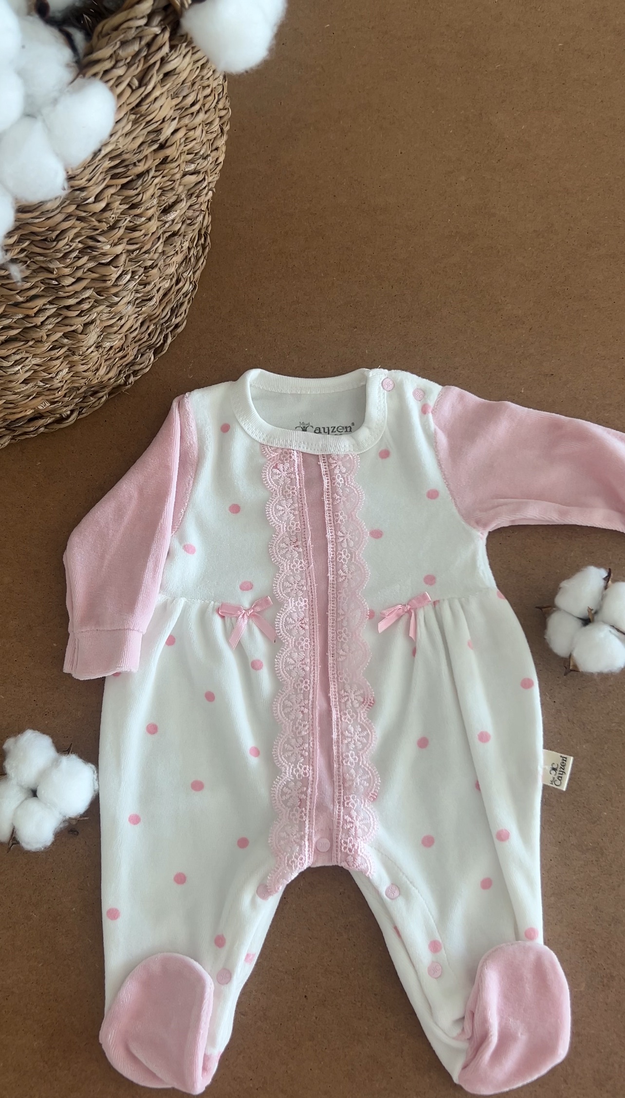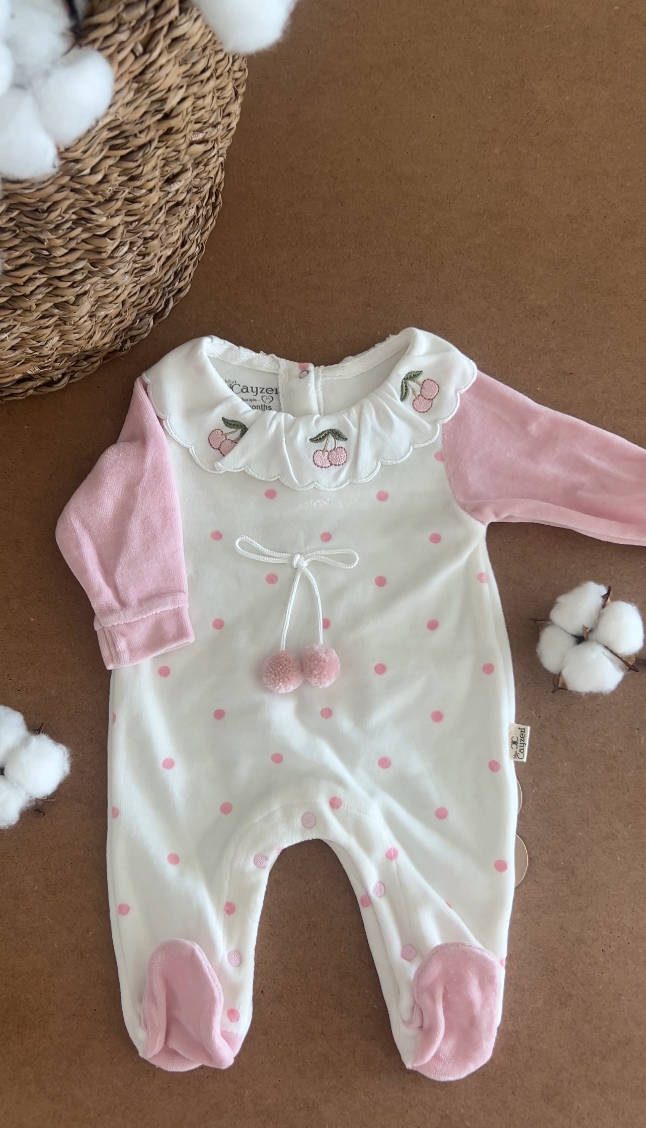 MINI CAYZEN / Kız Noktalı Kadife Tulum